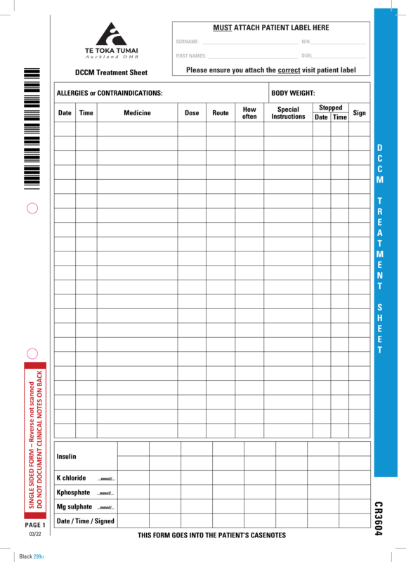 In the Department of Critical Care Medicine drugs are prescribed on the “DCCM Treatment Sheet”.
