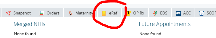 EEGs and Somatosensory Evoked Potentials can be requested through the Regional Clinical Portal. After selecting a patient then click on the “eRef” (e-Referrals) tab.