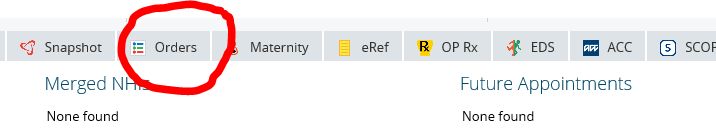 Radiology requests are placed using the Regional Clinical Portal. Select the patient and click on the “Orders” tab.