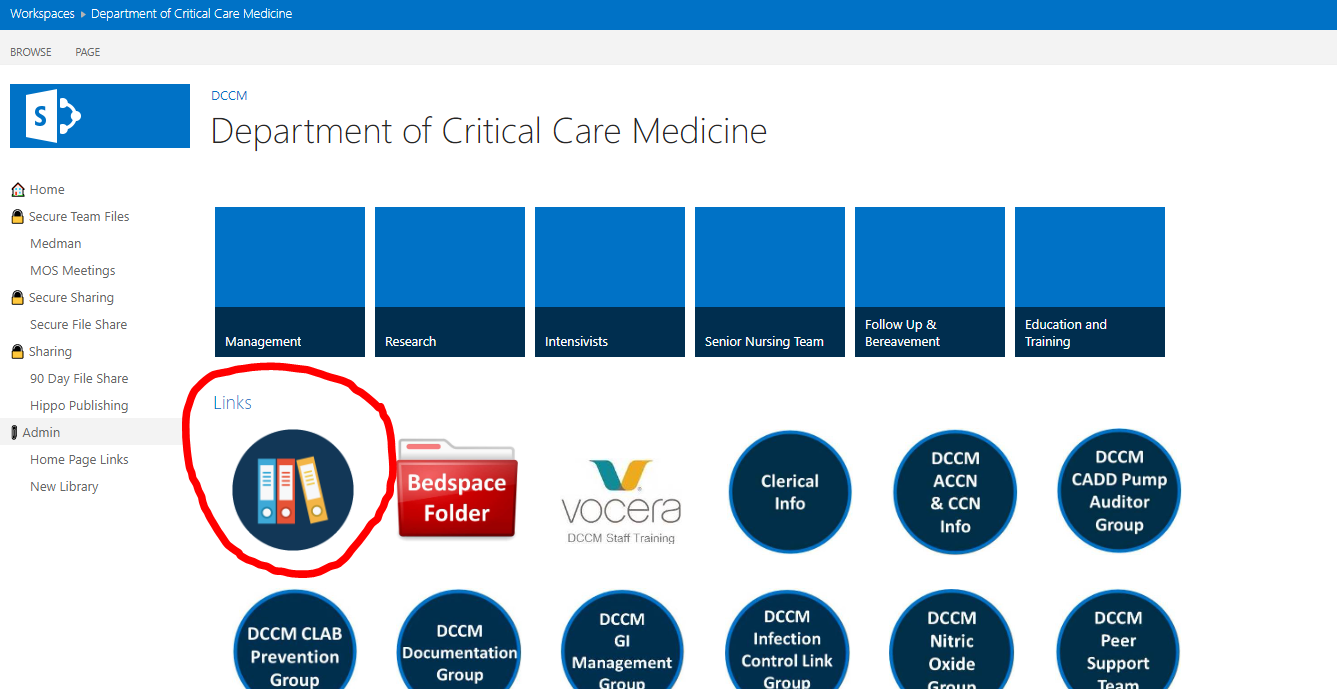 These are provided on this site for your convenience however the most up to date version of these are on Sharepoint and can be accessed from the hospital intranet as shown in the screenshots below. Alternatively you can navigate to: